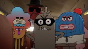 تدور قصة عالم غامبول حول عائلة واترسون المكونة من غامبول القط المشاكس الذي يُعرف عنه غباؤه لكنه دائمًا ما يسعى لإظهار عكس ذلك لمن حوله، أما داروين فهو أخ لـ غامبول بالتبني ظهر في صورة سمكة ذهبية اللون إذ يعشق المفاجآت ويقع في الكثير من المشكلات وبالفعل يتشارك هو وغامبول في الكثير من المغامرات والأحداث المُضحكة على عكس أناييس وهي الأخت الصغرى لـ غامبول التي تميزت بلطفها وذكائها الخارق. أما عن والديهم وهم نيكول وريتشارد فظهرا دائمًا في معظم الحلقات إذ كانت شخصية الأم نيكول مغمورة بالعاطفة والحب والشدة في نفس الوقت، أما ريتشارد فظهر في شكل أرنب ضخم الحجم باللون الزهري وكثيرًا ما كانت شخصية مُضحكة وساخرة كونه غير مؤهل للقيام بأي شئ بل كان يُكلف غامبول وداروين بالمهام بدلاً منه أما هو فكان كسولاً يحب النوم والأكل بشراهة، وهكذا كانت تدور الحلقات بين المغامرة والكوميديا.